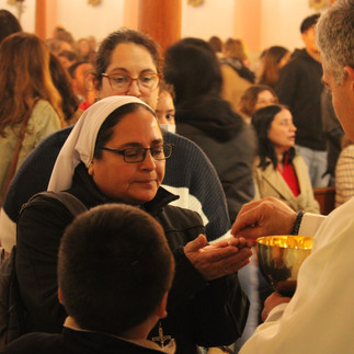 Las celebraciones comenzaron el sábado al mediodía con un encuentro juvenil y vocacional en el Colegio Don Orione de Los Ángeles. Allí, el padre Giacomo participó activamente de las dinámicas, juegos y momentos fraternos junto a jóvenes y religiosas. Uno de los momentos más destacados fue la presencia de las Pequeñas Hermanas Misioneras de la Caridad, quienes, junto a otras congregaciones, animaron los stands vocacionales. El stand de las hermanas, coordinado por la hermana Poli y la hermana Silvia, fue especialmente concurrido, testimonio del cariño y admiración que despiertan en la comunidad.